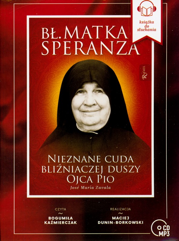 Błogosławiona Matka Speranza, mistyczka - jak twierdzi jej biograf - miała swój udział w ocaleniu życia polskiego papieża. Jej czciciele podkreślają, że była bliźniaczą duszą Ojca Pio. Podobnie jak święty kapucyn, posiadała nadzwyczajne zdolności, choćby bilokacji, podobnie wyróżniona została przez Boga krwawymi stygmatami, wreszcie podobnie przepełniona była miłością i ufnością w niezmierzoną Bożą potęgę, poprzez którą dokonywała niemożliwego. Autor książki José María Zavala, dzięki dostępowi do bezsprzecznie wiarygodnych świadectw wielu osób zebranych w trakcie procesu beatyfikacyjnego Matki Speranzy i po wysłuchaniu osobistych relacji tych, którzy przez całe lata żyli u jej boku, zabiera nas w niesamowitą podróż na granicy tego, co widzialne i niewidzialne, i gdzie miłość Boga przecina drogę naszego ludzkiego doświadczenia. źródło opisu: opis wydawcy